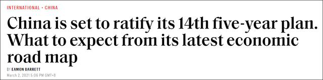 《财富》杂志网站也描述今年的两会“意义非凡”:“中国第十四个五年规划即将出炉,这是70年来引导中国成长为世界第二大经济体的一系列宏观经济指导方针中的最新一项。”