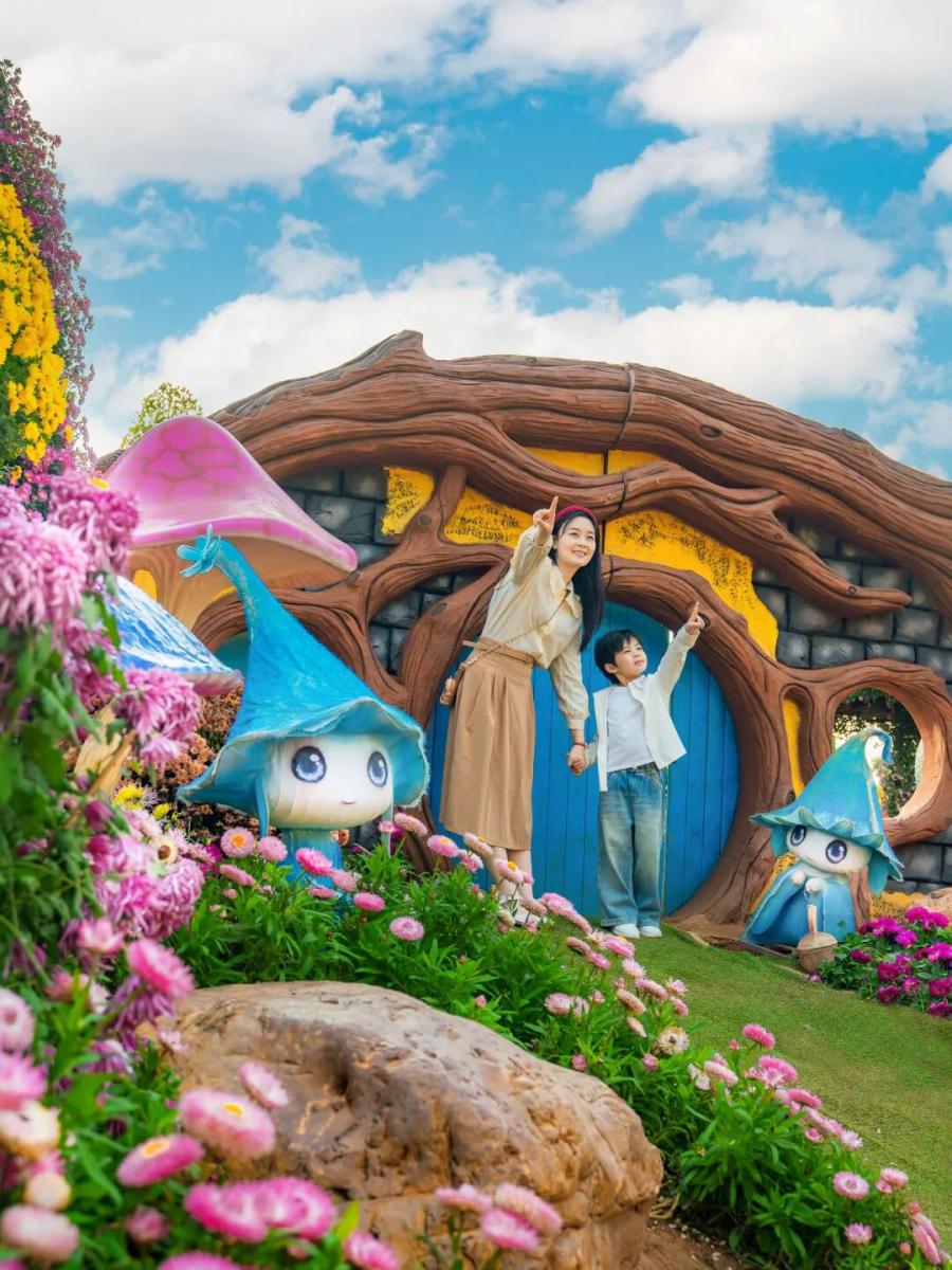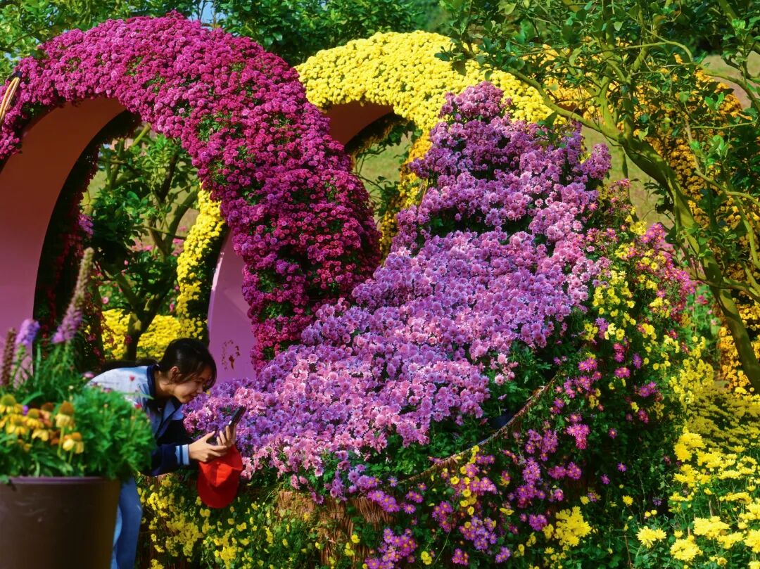 丘石花园里,菊花展绽放极致浪漫。这里从不是普通的花展,而是被匠心雕琢的童话秘境 —— 造型奇特的园林造景错落分布,或许是灵动的花艺装置,或许是童趣满满的创意造型,每一帧都像翻开了童话书插画。