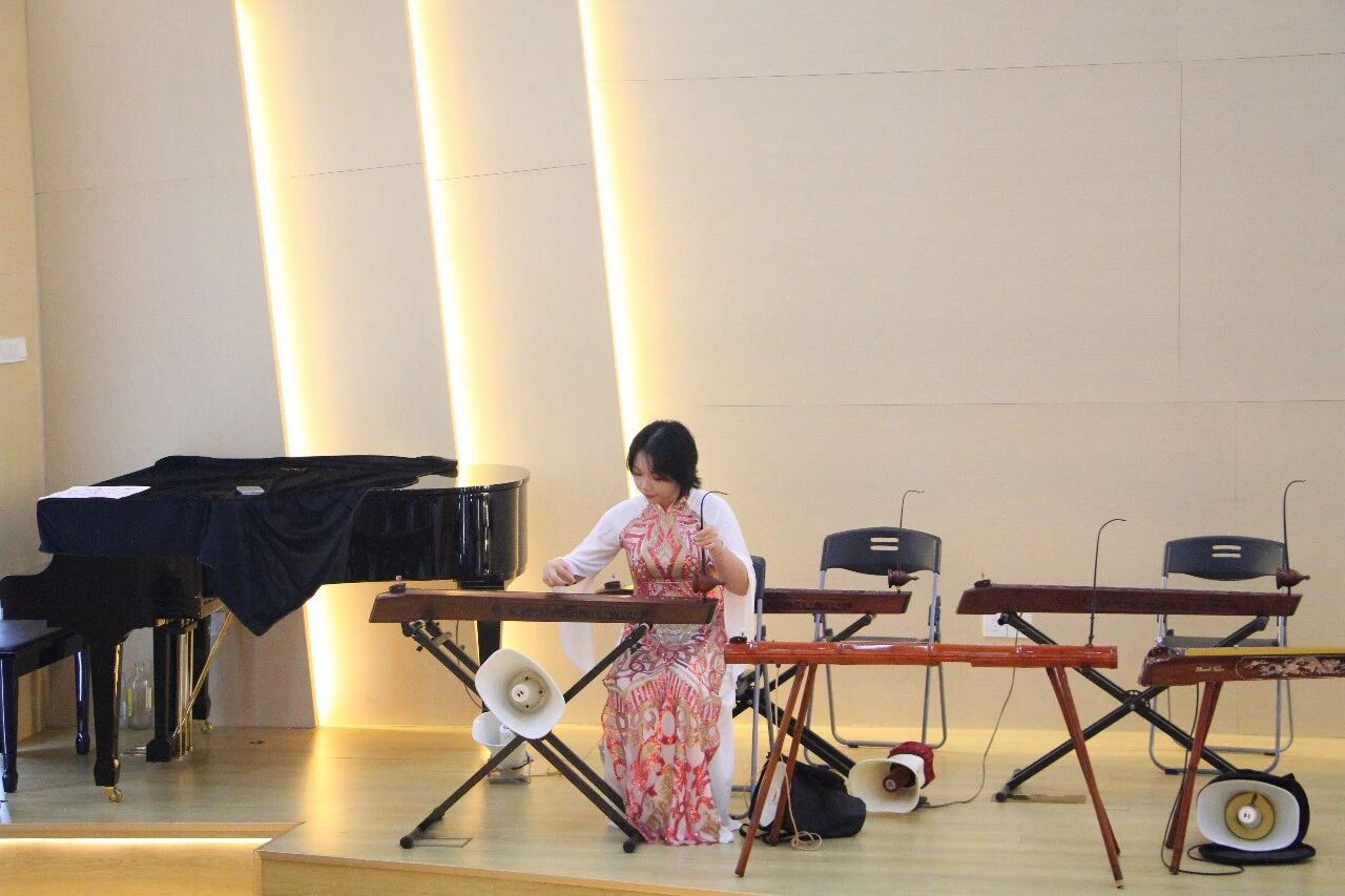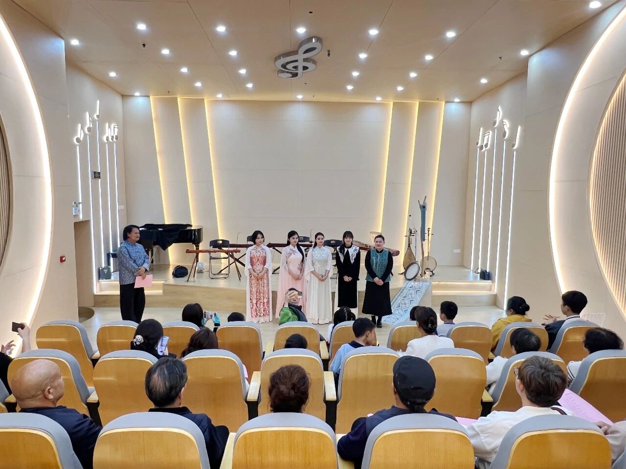 赵霞老师独奏的《游牧情歌》以其独特的艺术处理与情感表达,点燃了现场气氛。随后,《刘三姐组曲》通过器乐小合奏形式,带领观众穿越时空,感受浓郁的壮乡风情。音乐会的曲目编排精心巧妙,既有《拜月》《采珠谣》《独弦琴恋歌》等传统作品,展现独弦琴“一弦出百音”的技艺精髓;又创新性地演绎了《女儿情》《温柔的倾诉》《attention》《渴望》等流行歌曲与影视金曲,体现了这一古老乐器与时俱进的包容性与表现力。