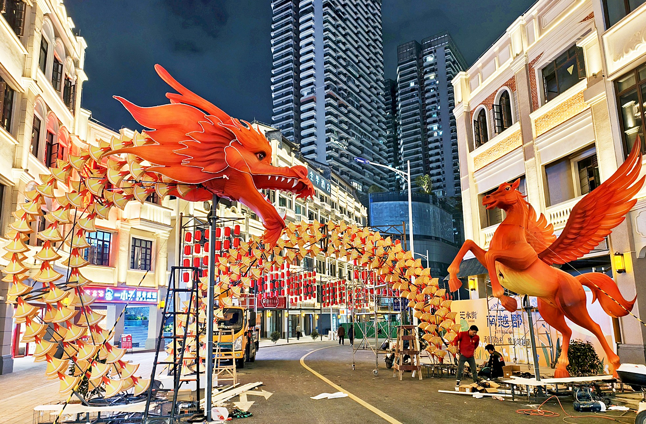 1月19日晚,记者提前探营“璀璨邕州·新春灯会”筹备现场。传统骑楼廊檐披上光影新装,青石板路映射璀璨灯彩,一场穿越古今的光影盛宴已初现雏形,令人期待。