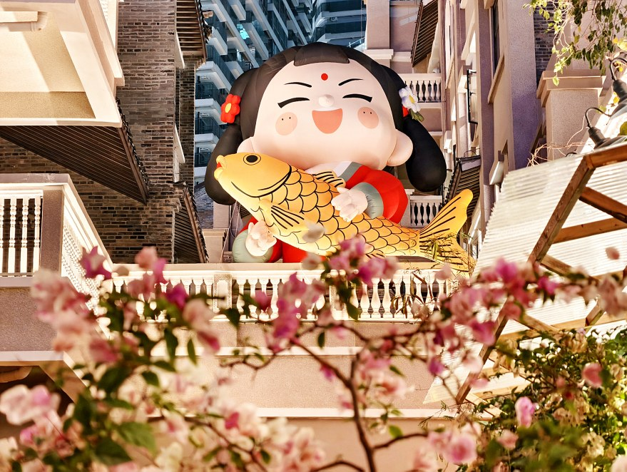 灯会主场设在邕州古城·水街片区,涵盖石巷口路、仁爱路及蜿蜒的内部街巷。20余组主题灯组分为“流光焕彩”“国风雅集”“祈福旺运”三大板块,“龙马精神”灯组昂扬大气,“马踏飞花”灯组祥瑞浪漫,“福娃闹春”“黄金树”等灯组年味十足,一步一景,步步惊喜。