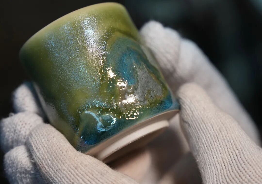 “这样的制作方式可以成功还原‘宋瓷’釉面的本色,那种或温润似玉,或剔透如冰的质感。”陈晓说,“这并非刻意绘制,你会发现,每一只山水杯都不一样。”