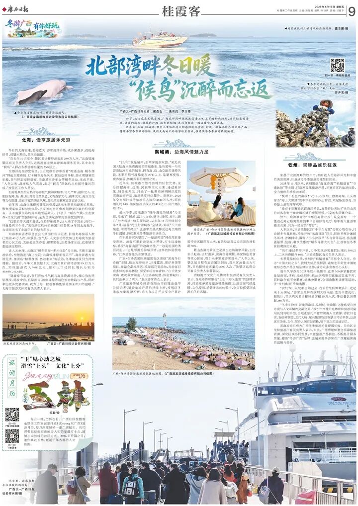 进入冬季,防城港以“暖冬遇见防城港”为主题,推出了“暖游、活力、文韵、研学、暖居、有礼、暖心”七大板块130多项活动,从去年11月持续到今年2月,涵盖“吃住行游购娱”全链条,实现“天天有暖意,周周有亮点”,让游客沉浸式感受边海之城的冬日温情,持续激发冬季旅游市场活力。