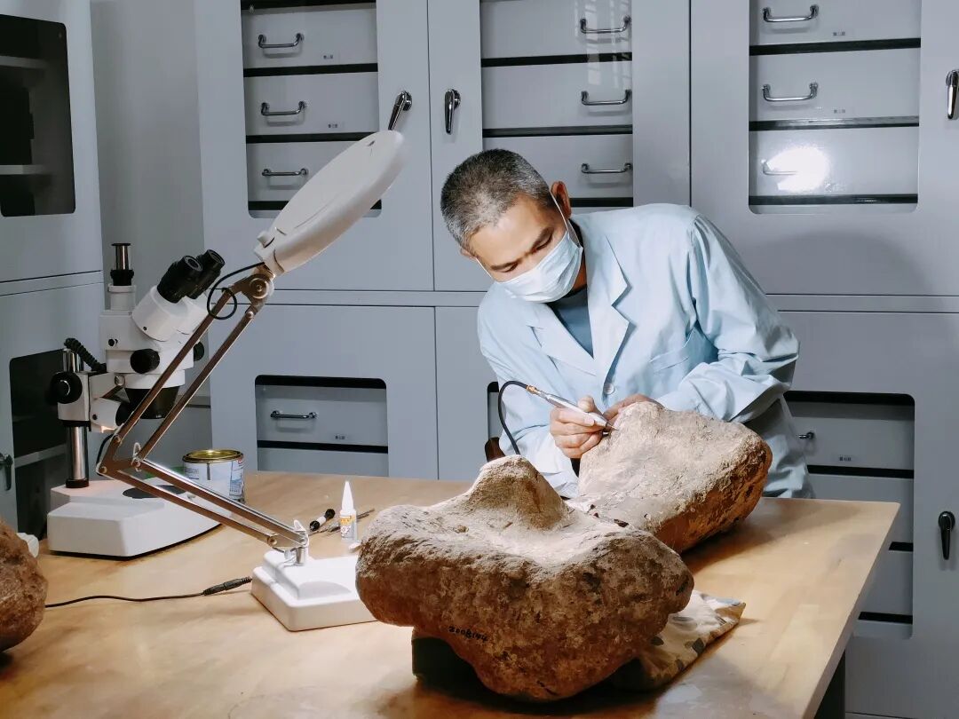 每一件化石都蕴藏着珍贵的历史印迹,专业人员正对其施以“魔法”,让其以最好的状态展示在观众面前。