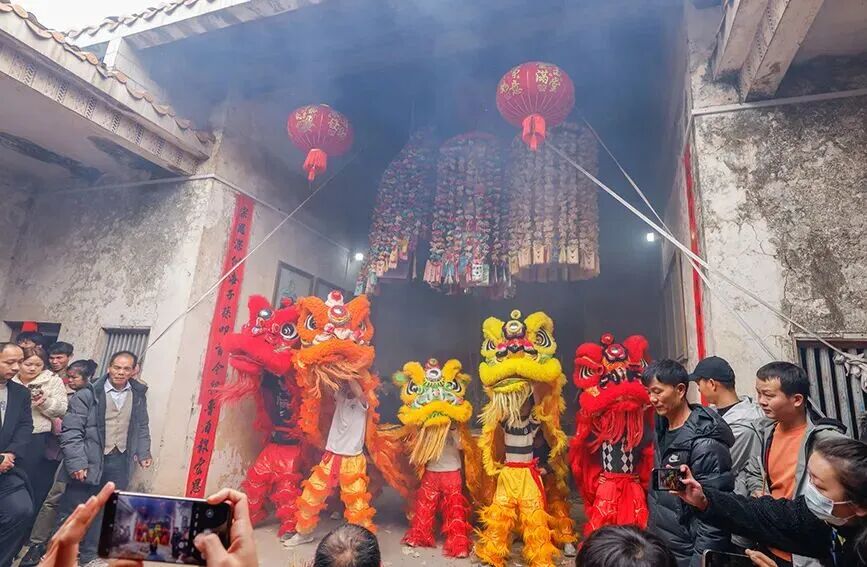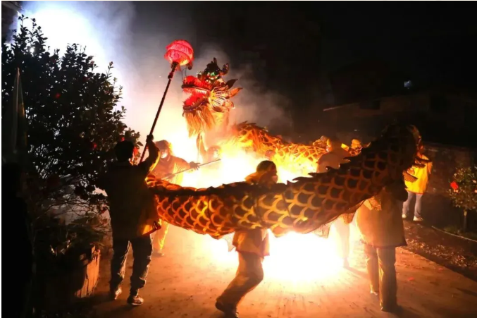 活动内容:正月初三上午11点左右,在浮石老政府码头,由制龙师傅为龙点睛,赋予龙灵性。点睛仪式后,舞龙队伍开始沿着浮石街道巡游。晚上8点左右,舞龙队伍再次出动进行表演。舞龙队通常由两条炮龙、120余人组成,其中十几人同舞一条巨龙。舞龙时搭配锣鼓等乐器,通过不同的鼓点节奏指挥舞龙队伍的动作和节奏。沿街居民还会点燃鞭炮抛向龙身,鞭炮声与锣鼓声交织。