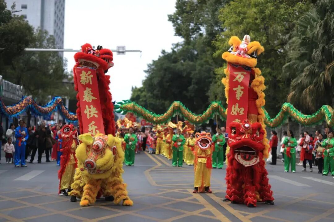活动内容:龙狮共舞、锣鼓喧天、秧歌欢腾,传统民俗队伍沿街行进,与市民亲切互动。