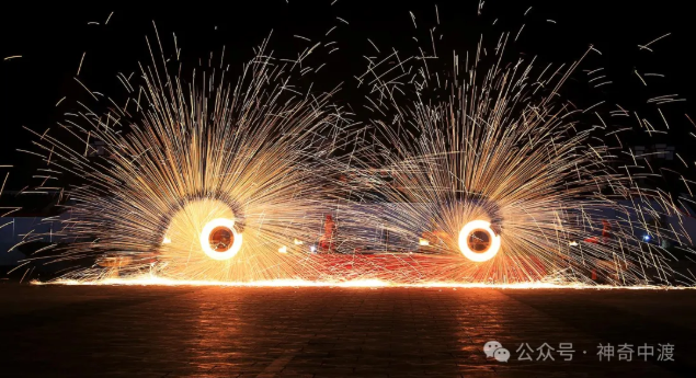 活动内容:由非遗传承人现场表演打铁花技艺,展现铁水抛洒空中形成火花四溅的壮观场景。