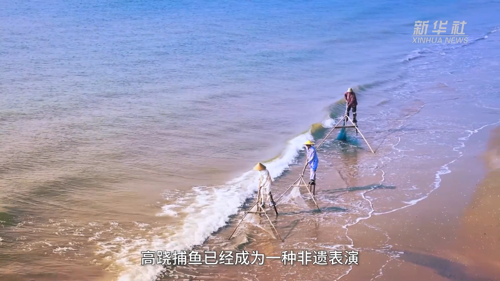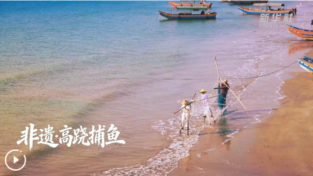 京族是我国的海洋民族。过去,居住在广西防城港东兴市京族三岛的京族渔民,用简单的捕鱼工具,从大海获取生存所需的食材。如今,古老的高跷捕鱼成为一种非遗表演。