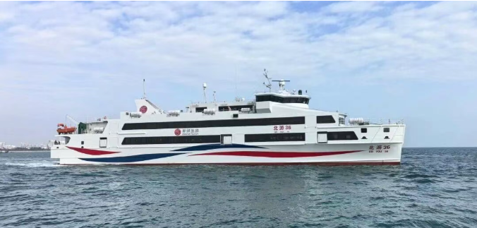 近日,北海新绎游船有限公司委托江西江新造船有限公司建造的1200客位双体高速铝合金客船“北游36”轮顺利交付。作为我国自主设计、自主建造的标杆性船舶,“北游36”轮凭借硬核性能与创新设计,刷新了国内双体高速铝合金客船载客量最大、航速最快两项纪录。