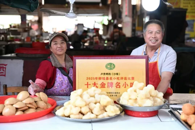这份朴素的手工沙堆,蕴藏着夫妻二人二十余载光阴,不久前刚荣获“柳城县十大金牌名小吃”,为柳城的味觉图谱再添一笔温情注脚。