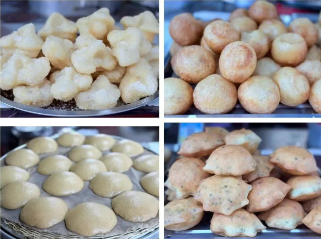 东泉镇素有“小香港”之誉,是一座有着圩市历史的繁华小镇。据镇志记载,五百年前此处已商贩云集,民国年间油堆、油馍等小吃便已声名远扬。如今,东泉依旧延续着“不夜城”的喧腾气象,小吃摊遍布街市,每逢圩日,人流络绎,交易熙攘。在诸多本土味道中,糯米小吃始终占据半壁江山——沙堆、八角馍、发糕、芋头糕、糯米饭……每一样都是让人垂涎欲滴的美味。