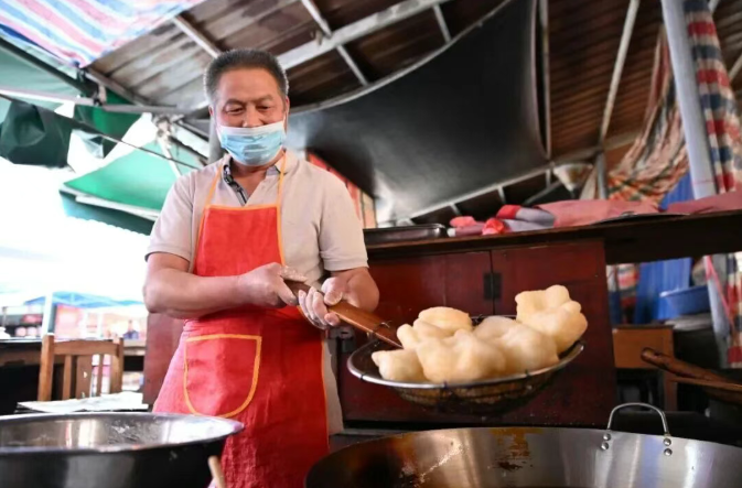 在这座被喻为“小香港”的繁华小镇里,卢贵明与妻子一直守着一锅油、一团浆、一门手艺。从沙堆到发糕、八角馍、油馍……每一种小吃背后,都藏着一份默默传承的用心,在晨昏烟火中,静静延续着柳城的民间食记,也温润着一方人绵长而朴素的日子。