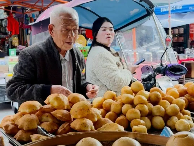 “就是专程开车来东泉,找这一口老味道。”摊位前,赶圩的人们驻足等待,接过热乎乎的沙堆趁热咬下一口,外壳酥脆有声,内里温软黏糯,米香与清甜交织,余韵绵长。一位从柳州来的游客感慨:“这个味道和小时候的一模一样。”
