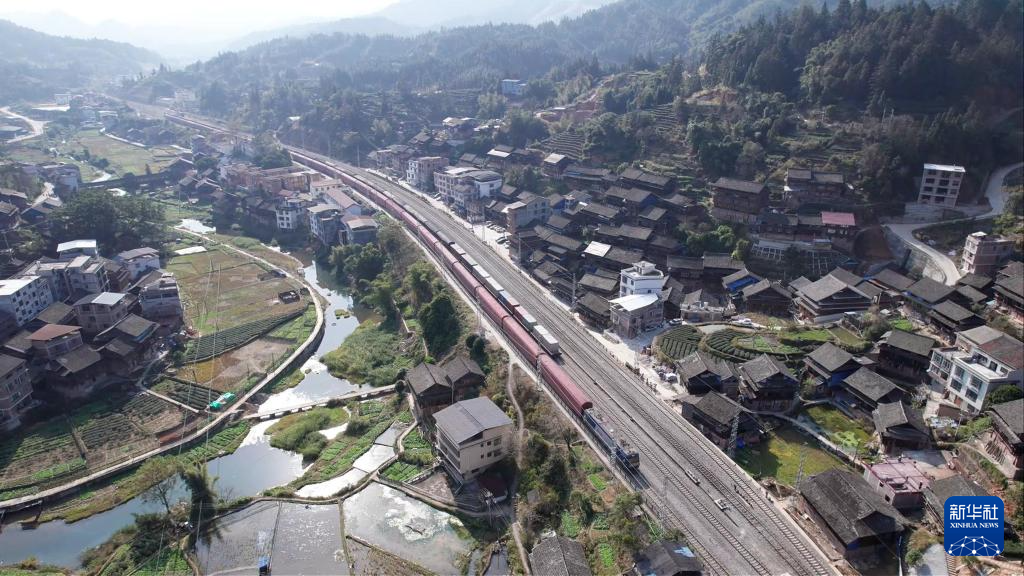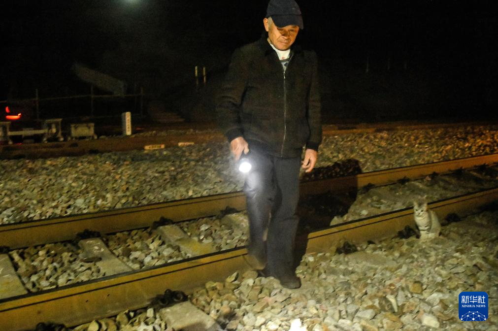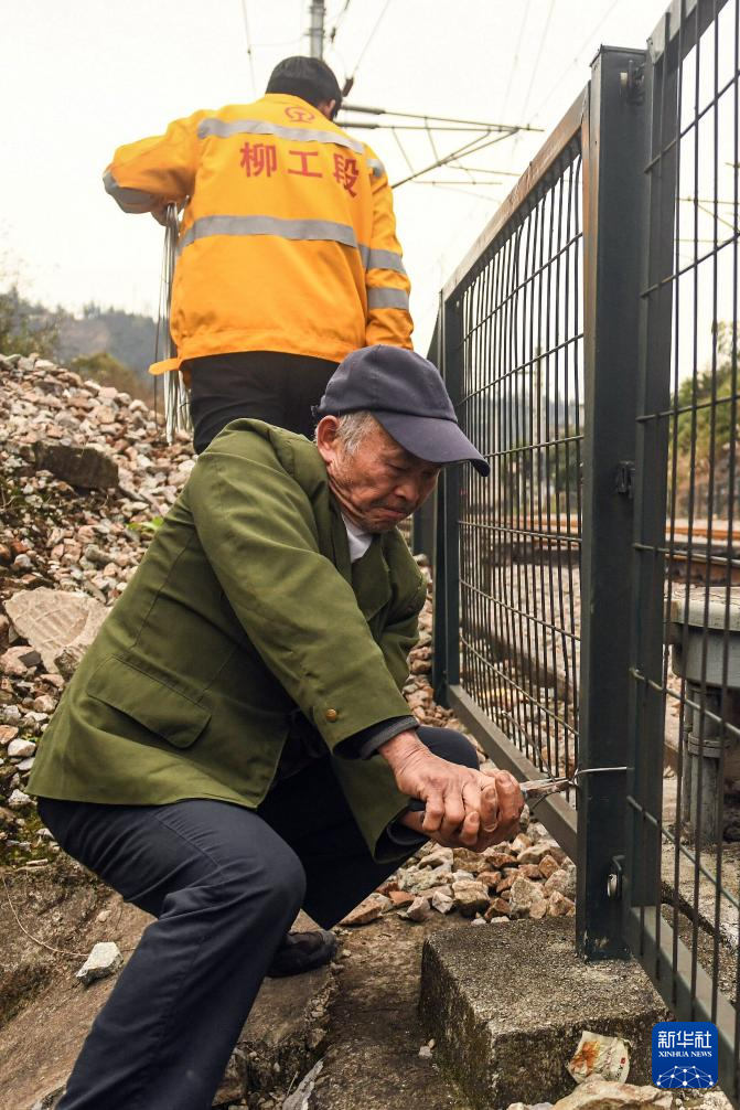 春运期间,在湘桂边界的广西三江侗族自治县八江镇八斗村,过村的焦柳铁路运输愈发繁忙。今年70岁的王庆财像往年一样在铁道口当“哨兵”,保障运输安全。
