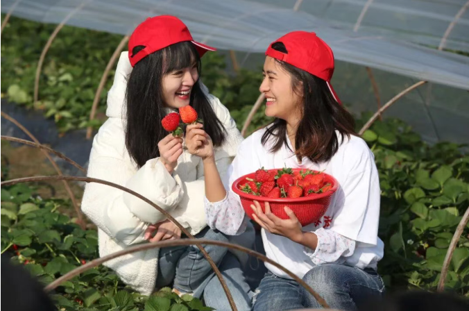 隋珠草莓:草莓香甜可口,拥有单体独栋薄膜大棚环境,保障了果蔬的品质,以及不同季节、不同天气情况下的采摘体验。