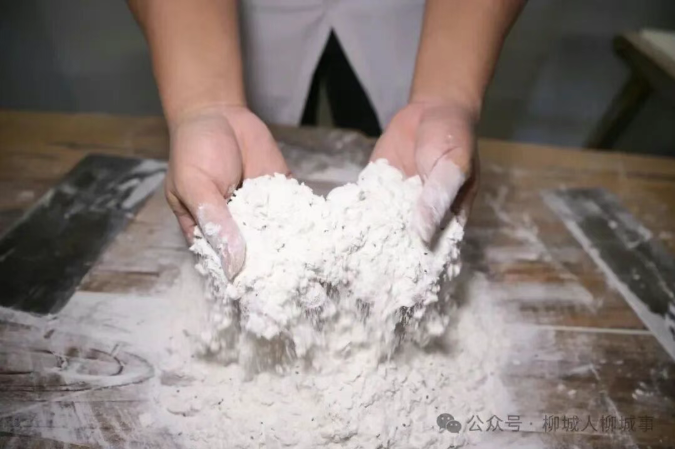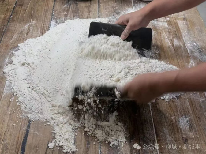 制作的精妙,全在“裹”与“压”之间。他先将糯米粉在案台堆成“窝状”,然后让稠如酸奶的糖油顺着勺沿拉丝流入米粉堆,双手呈弧形翻拌,让米粉与糖油裹成棉絮般的团状。