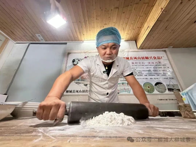 柳城县凤山镇顺兴食品厂的木案台上,一捧雪白的糯米粉堆成小丘,廖荷辉指尖轻捻,将炒香的黑芝麻均匀撒在米粉的中央——这是“柳城十大金牌名小吃”米饼的第一步,也是柳城人记忆里最熟悉的甜香开端。作为柳州市级非遗传承人,廖荷辉把家族几代人的手艺,揉进了一枚小小的米饼里。