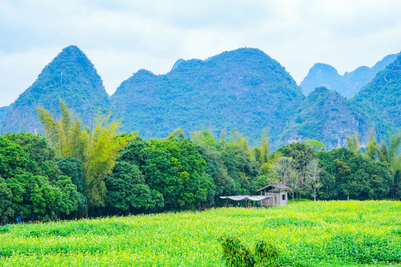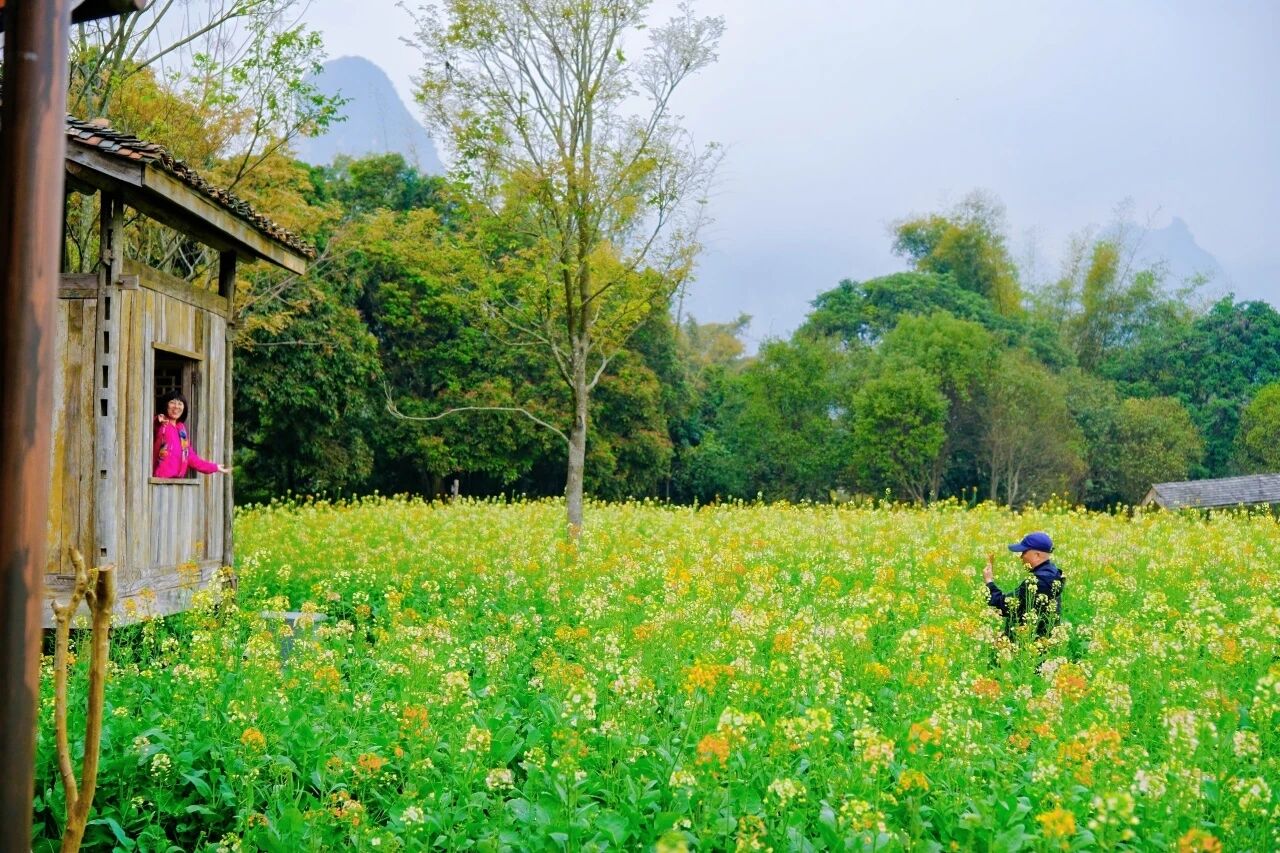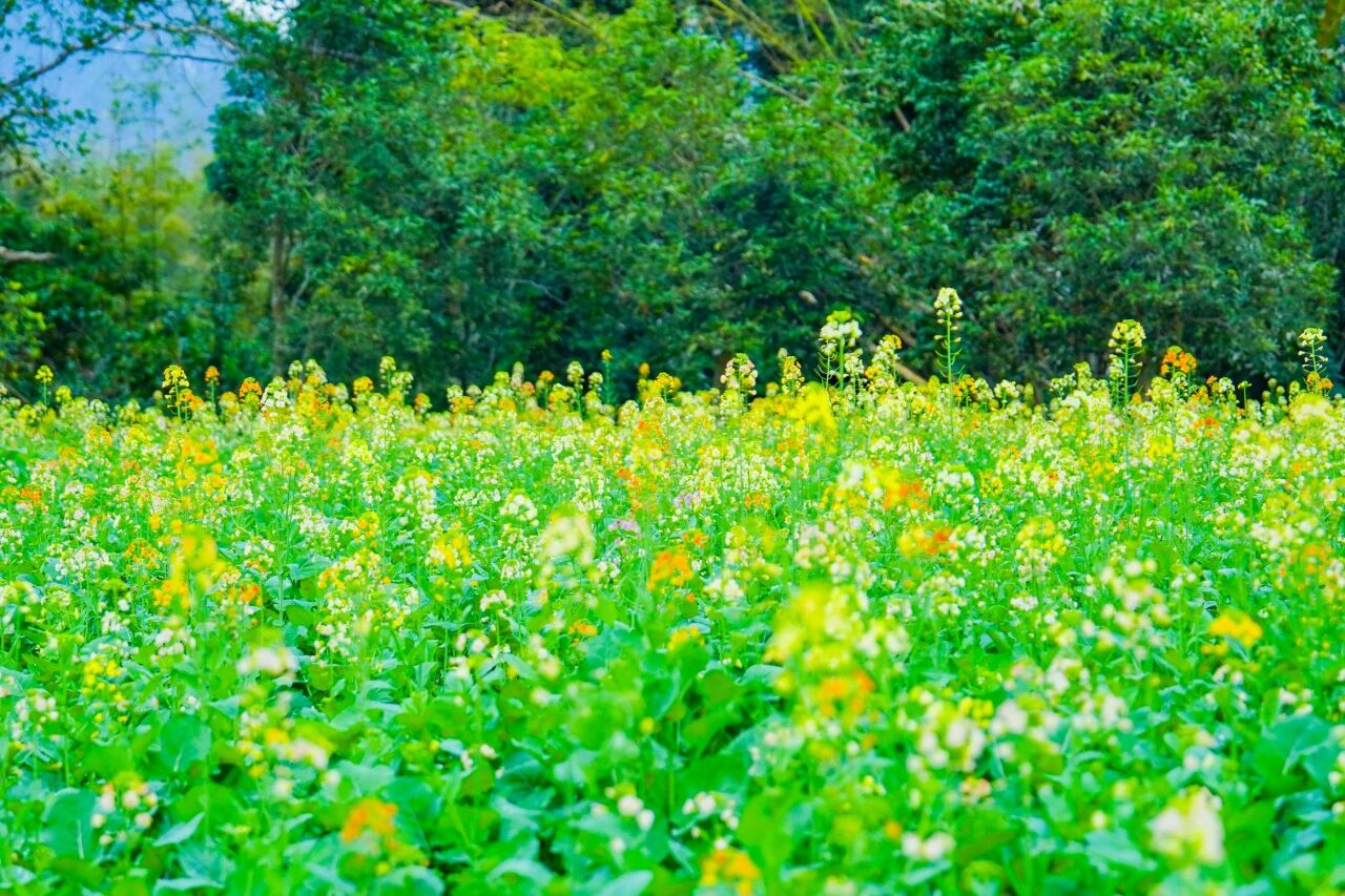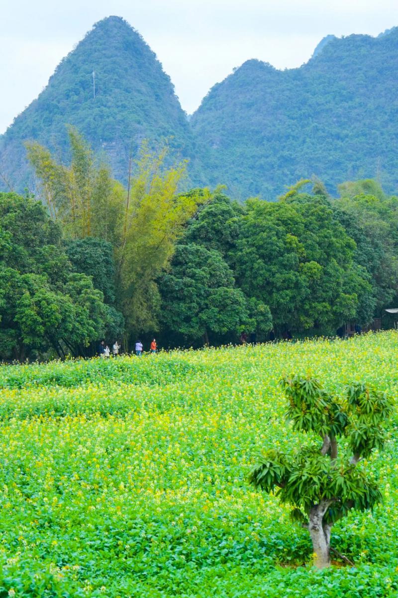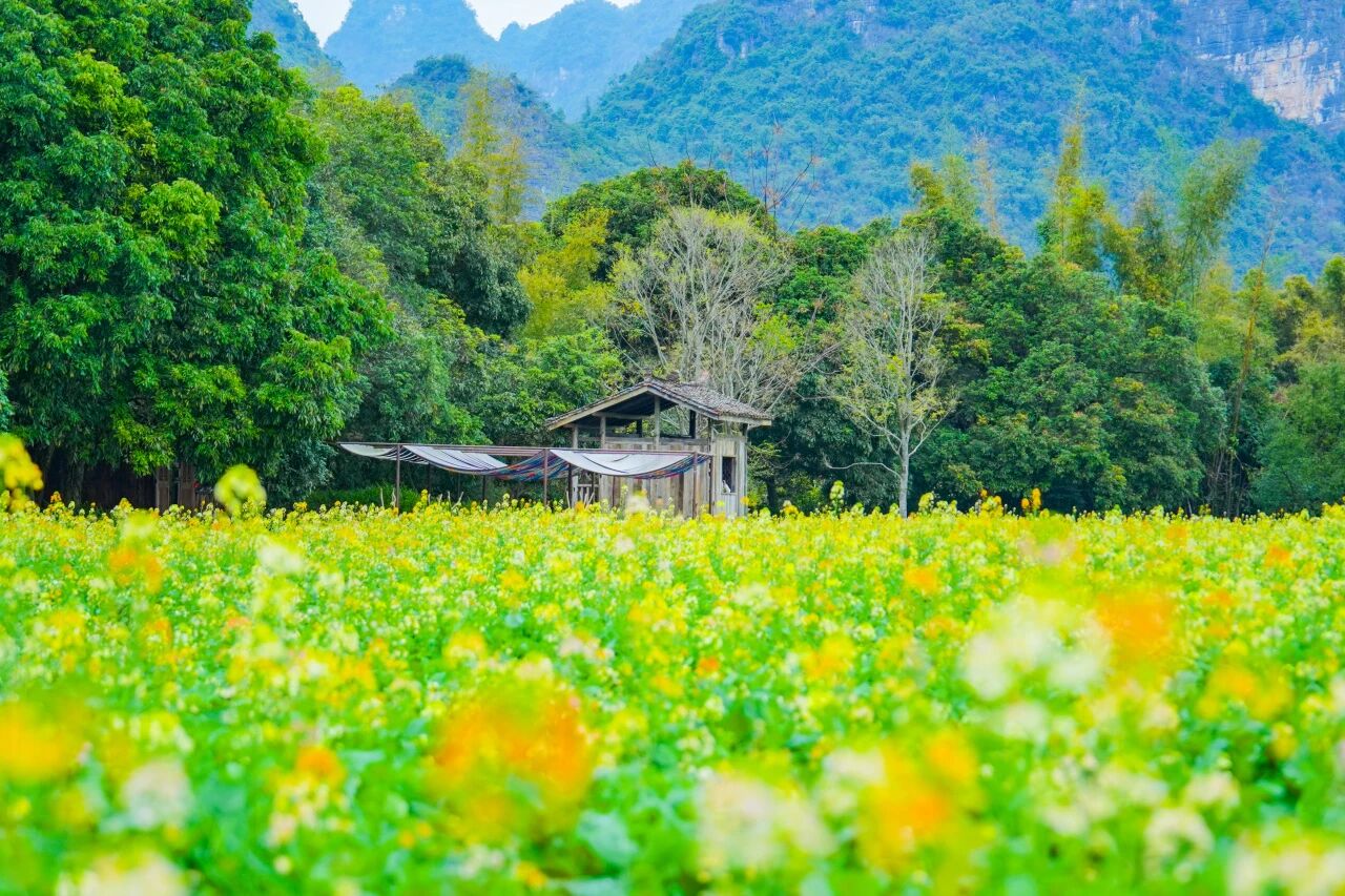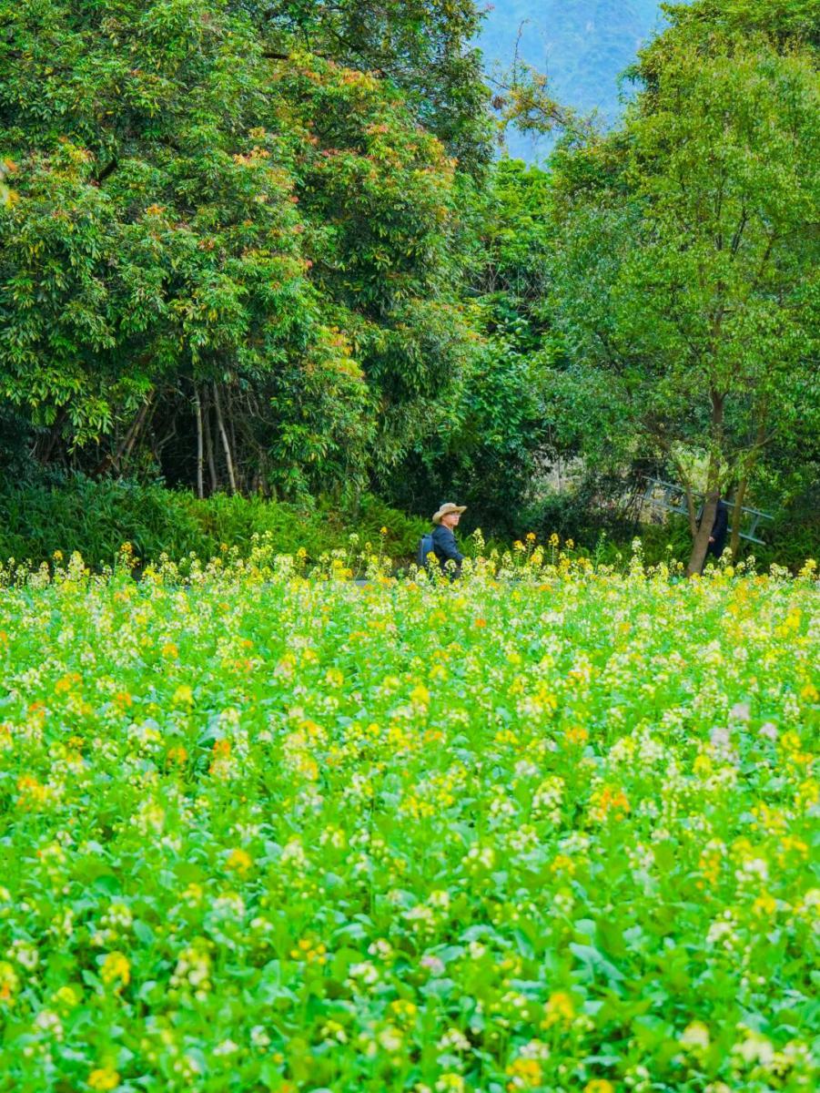随处可见油菜花绽放,粉的、白的、紫的、橙的、黄的……一幅诗意而明媚的彩色画卷,在天地间铺排。