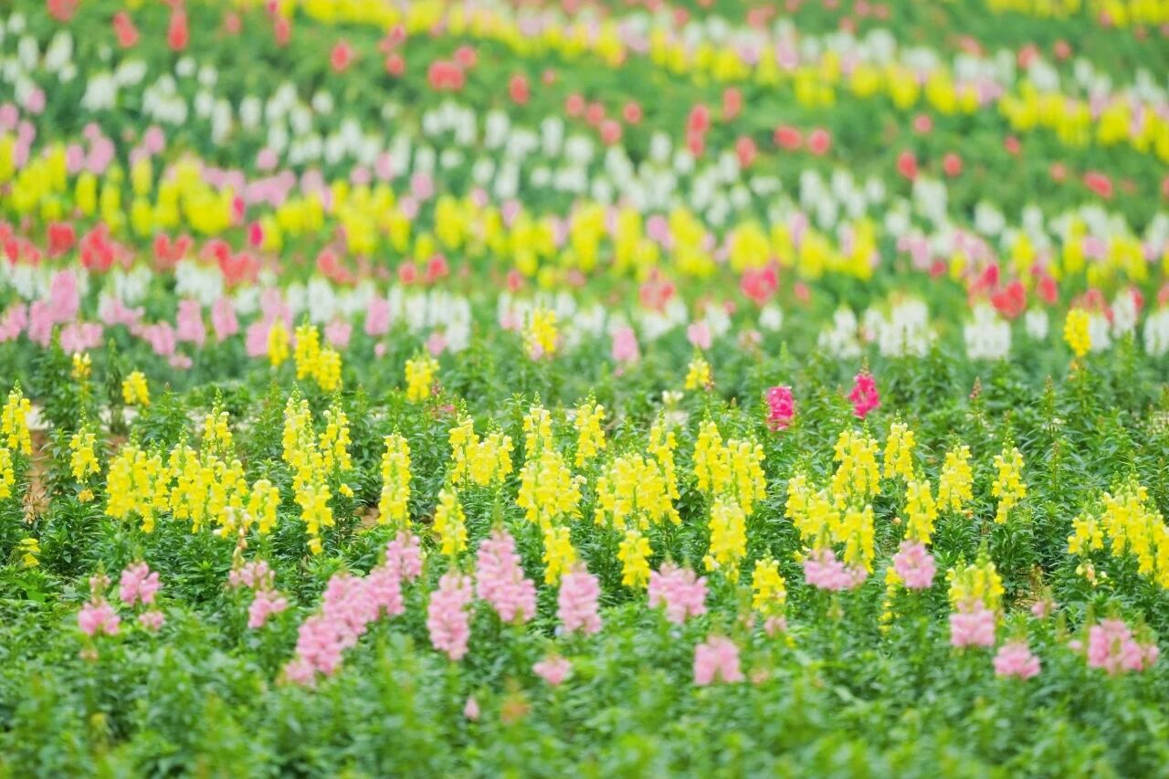 走过油菜花海,穿过十二官田桥,金鱼草花海便如一幅画卷在你面前徐徐展开。