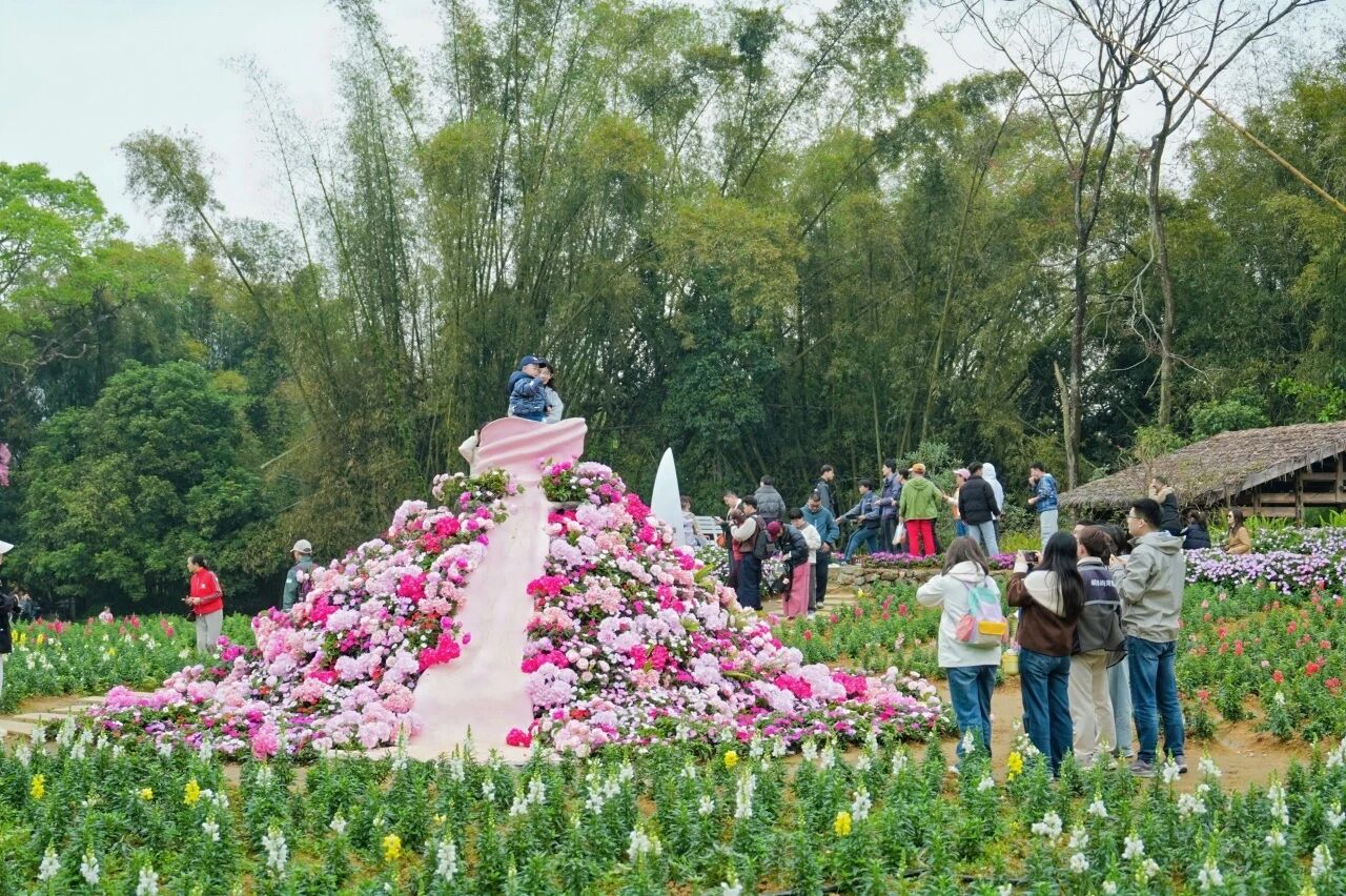 游客们特别喜欢这彩色“海洋”,寻找春天的足迹,捕捉蜂飞蝶舞的唯美瞬间。