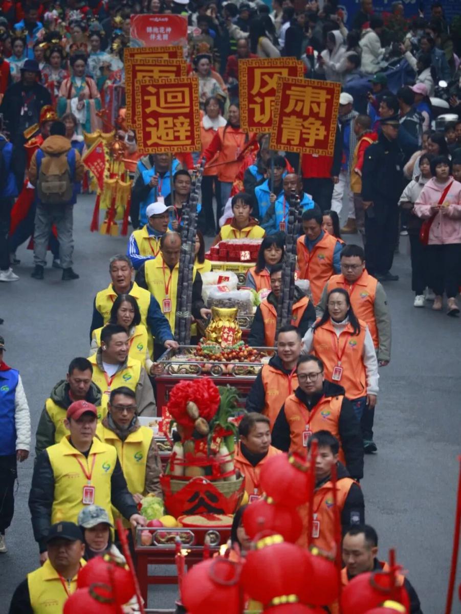 沿途还有20余个表演方阵轮番登场:三江侗族琵琶歌、梦呜苗寨欢歌、福马萌娃团、汉服方阵……民族风情与国潮时尚交相辉映,更有撒糖互动、鲜花队送福,惊喜不断。