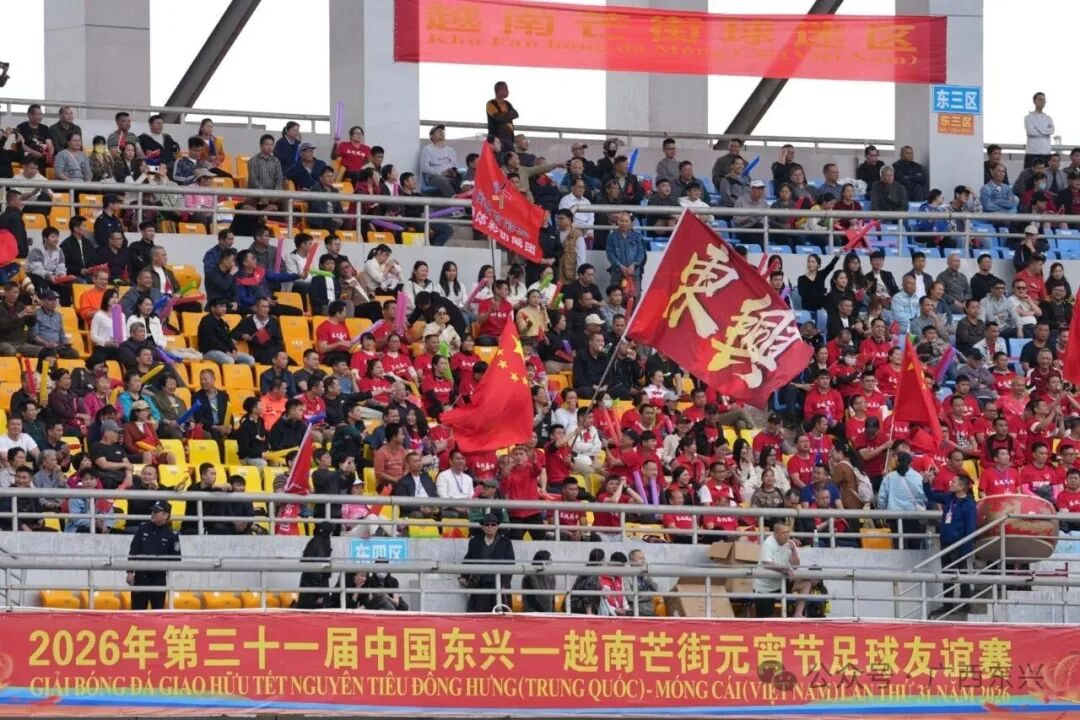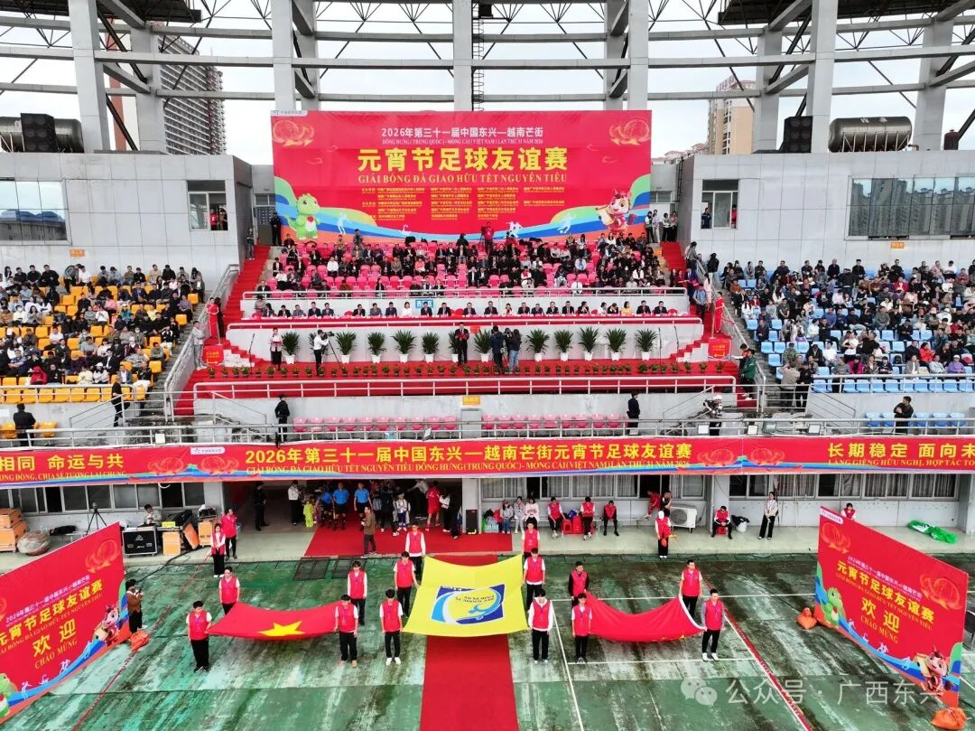 元宵佳节以球会友,绿茵场上共话团圆。3月3日,2026年第三十一届中国东兴—越南芒街元宵节足球友谊赛在防城港东兴市体育场举行,来自中国东兴市与越南广宁省六乡坊的代表队再次聚首绿茵场,以这项传承三十余载的传统赛事为媒,赓续“同志加兄弟”的深厚情谊。