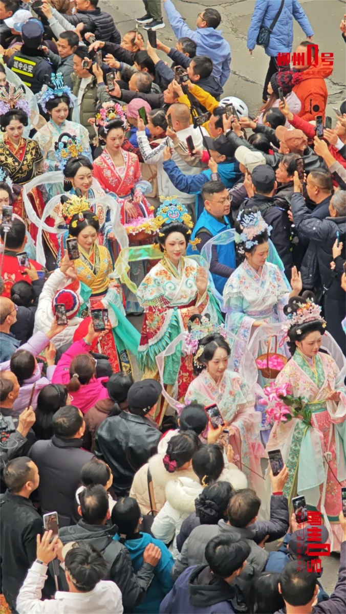 城中区统战部部长佟德军介绍,参与今年“柳州龙王出游”的演员人数有850余人。巡游设置12支龙王仪仗队,20个表演方阵。演员们或身着传统汉服,宛如翩然下凡的仙子;或身着少数民族服饰,吹起芦笙送上欢喝与祝福,吸引众多市民游客夹道观演、拍照打卡。