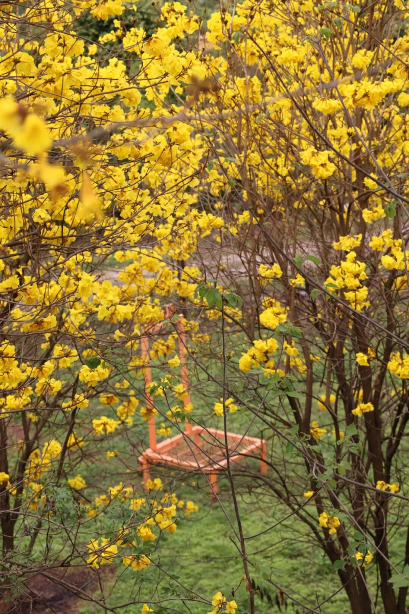 那马镇坛板坡风铃木精品园,黄花悄然盛放。这里都是矮化品种,触手可及,不用登高踮脚,就能轻松与繁花同框,近距离拥抱春日惊喜。