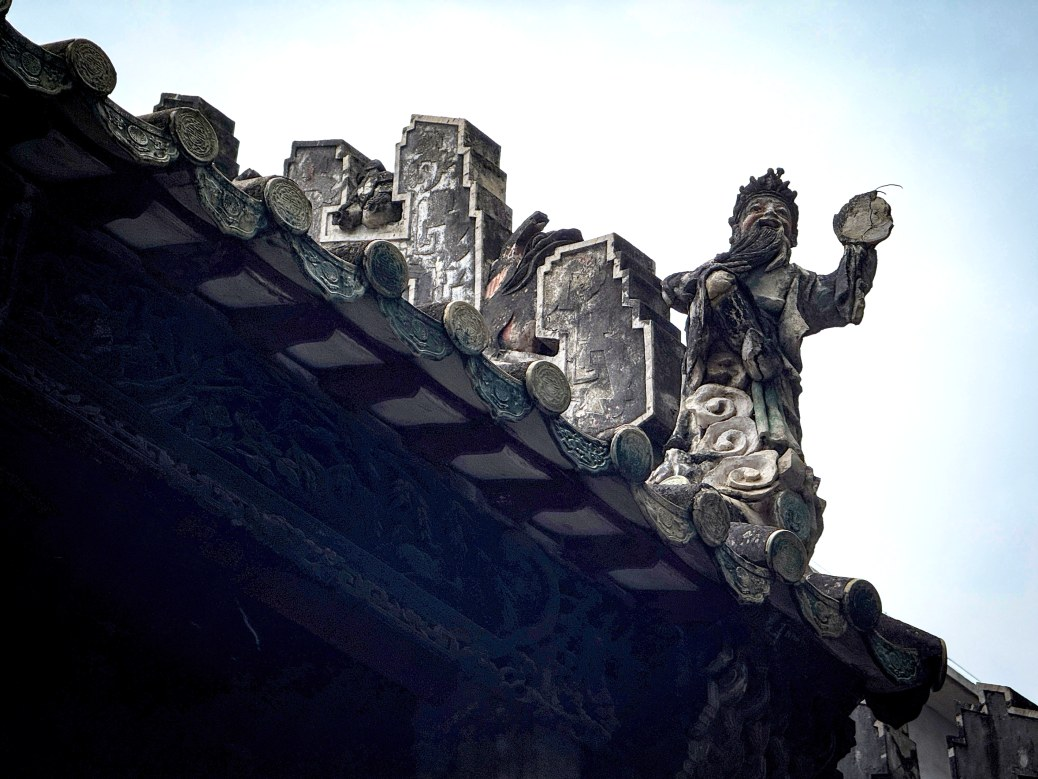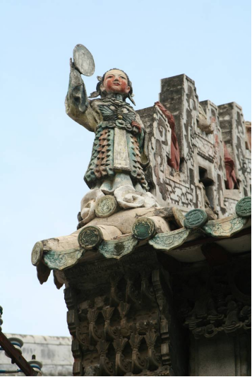走近会馆,其古朴的建筑风貌,第一眼便令人惊艳,它通高约10米,通面宽近30米,轩敞大气;现存的门楼和两侧厢房沿着中轴线对称排布,形制十分规整。最有意思的是那些“会说话”的细节,如屋顶正脊上,运用灰塑、浮雕和彩绘描绘粤剧《六国大封相》的场景,所塑40个人物,每个都栩栩如生,惟妙惟肖。难怪有游客说,这哪里是古建筑,分明就是一幅立体的连环画。