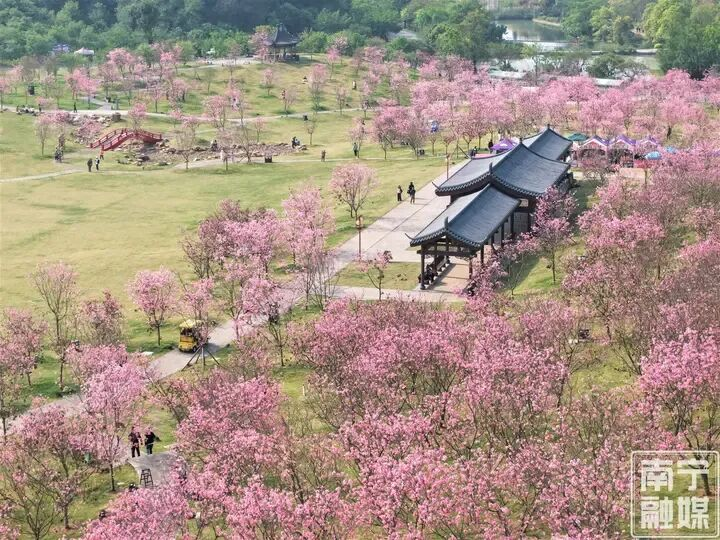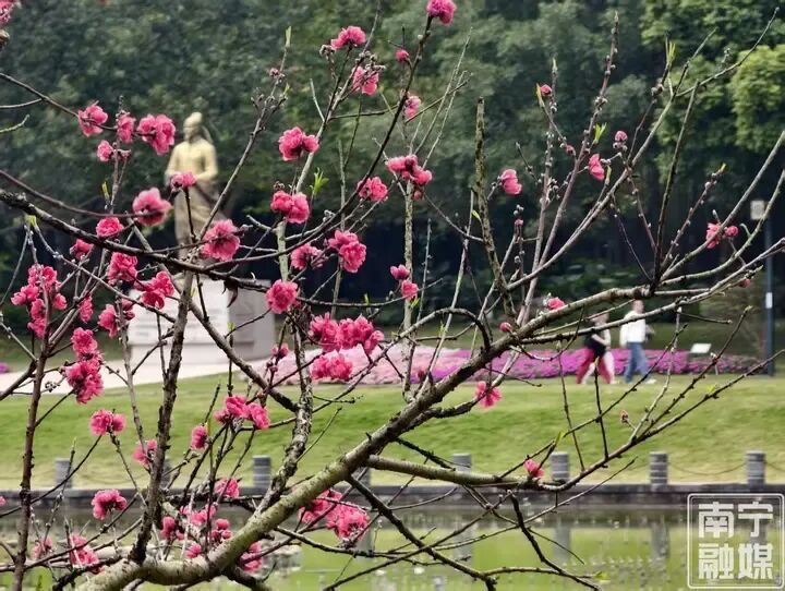 还有各大公园里,桃花、樱花、金花茶、格桑花、豆梨花、月季花、蓝花藤、无忧花轮番上阵,让市民在家门口就能尽享春日花事。