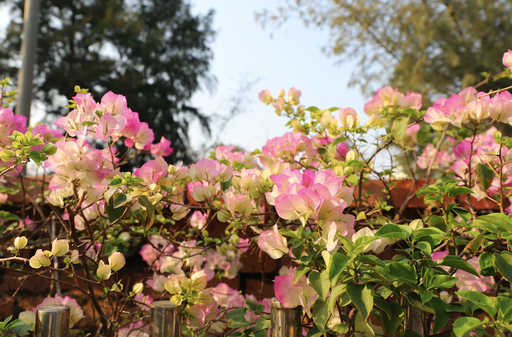 北海银滩平滩听涛区的三角梅尤为特别,是罕见的粉色。它们静静倚在围墙边,像被海风吻淡的胭脂,又似少女低头时耳尖洇开的羞赧。花朵在海风中摇曳,恍惚间分不清是花在追逐风,还是风在偷吻花。