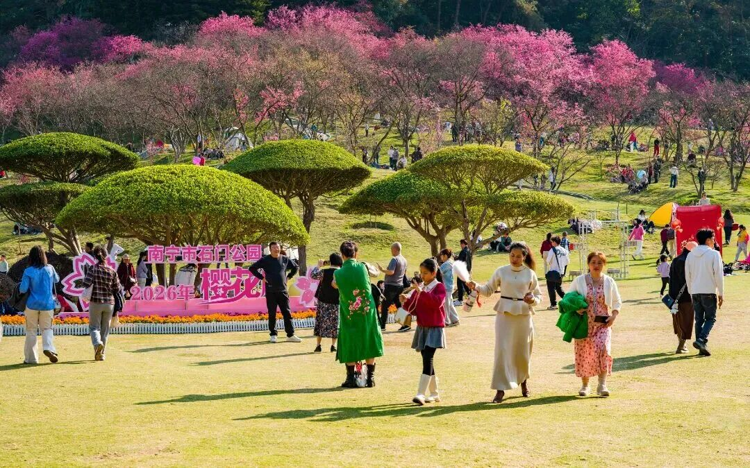 初春时节,南宁仿佛被大自然打翻了调色盘,处处繁花似锦,美得让人窒息。红的似火、粉的如霞、黄的赛金,交织成一片绚烂的梦幻之境。