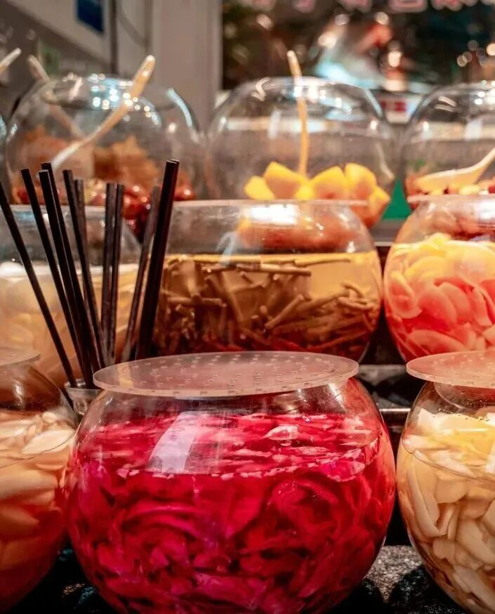 南宁酸嘢:“英雄难过酸嘢摊”,将新鲜芒果、菠萝、木瓜等用醋、辣椒粉、白糖腌制,酸甜咸辣香,多种味道在口中爆炸,生津开胃。