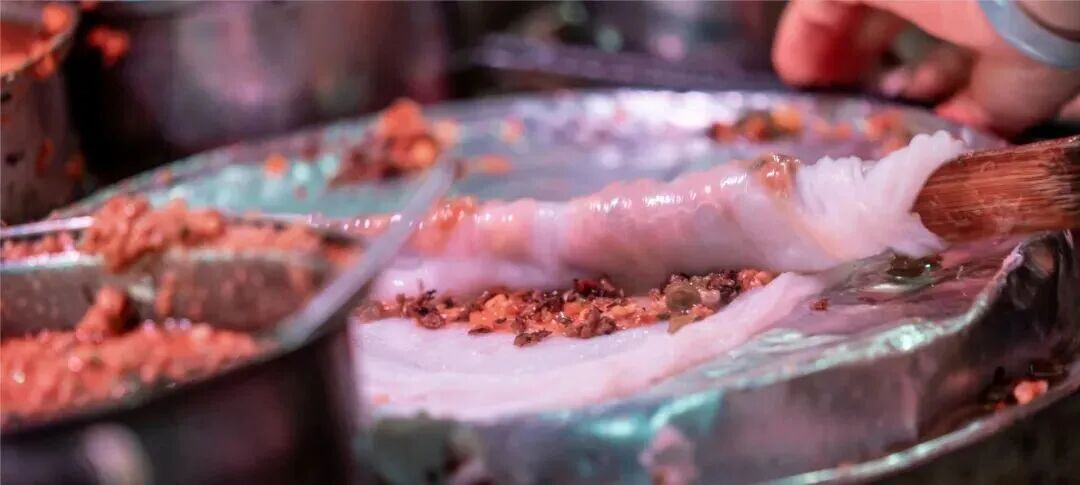 卷筒粉:南宁版的“肠粉”,米浆蒸成薄皮,卷入肉末、豆角等馅料,淋上黄皮酱,口感软滑。