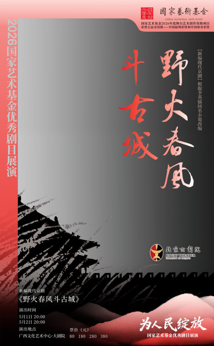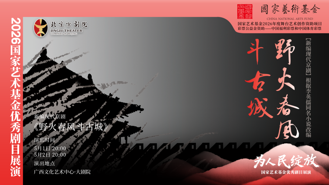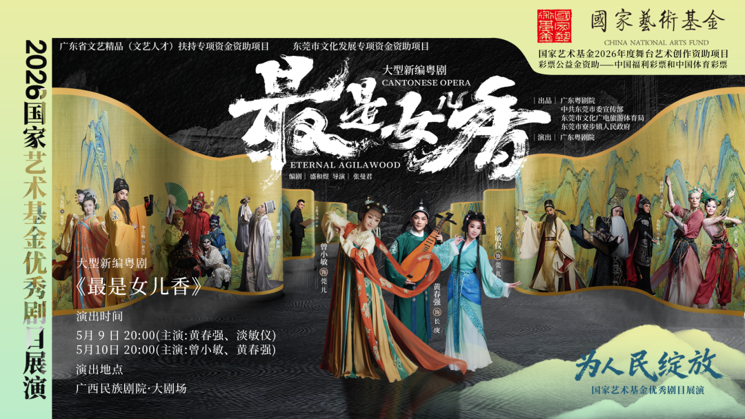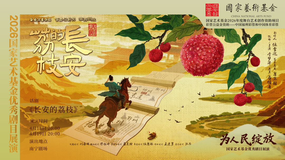 为发挥优秀艺术作品的导向和示范作用,满足人民文化需求,增强人民精神力量,由国家艺术基金管理中心、广西壮族文化和旅游厅主办,南宁市、柳州市文化广电和旅游局承办的“为人民绽放——国家艺术基金优秀剧目展演”,将于2026年4-5月在广西举办。届时,将有来自北京、山东、陕西、江苏、广东、浙江、广西7个省市区12家院团的12台精品剧目在南宁、柳州演出。参演剧目均为获得过国家艺术基金资助的优秀剧目。