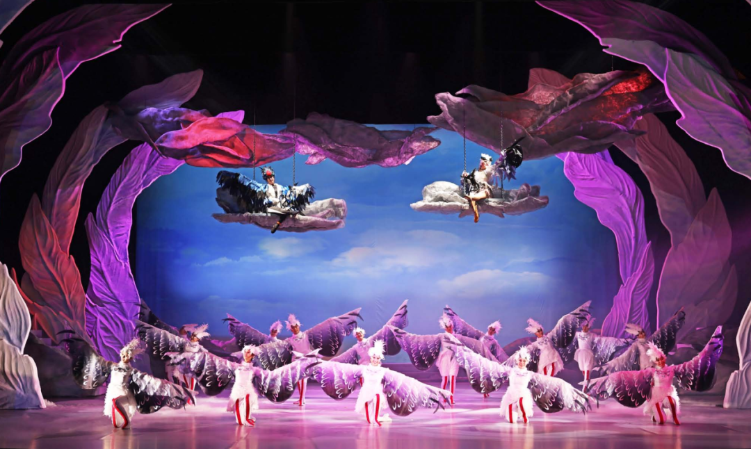 儿童剧《飞越母亲河》讲述的是一个关于梦想的童话故事。在黄河源头生活着一只名叫吉祥的黑颈鹤,刚一出生就失去了双亲,翅膀也受了重伤的他,在藏族男孩扎西照顾下长大了。
