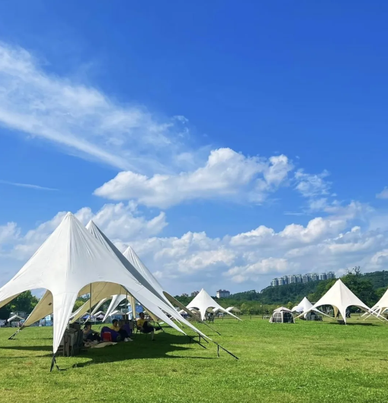 这里是年轻人的“微度假”副本。不用带帐篷,不用准备繁琐装备,约上三五好友,拎上冰咖和甜点,开启一场说走就走的城市露营。坐落于灵龟山公园内的牧云营地,正是这样一处可以安放心灵的所在。