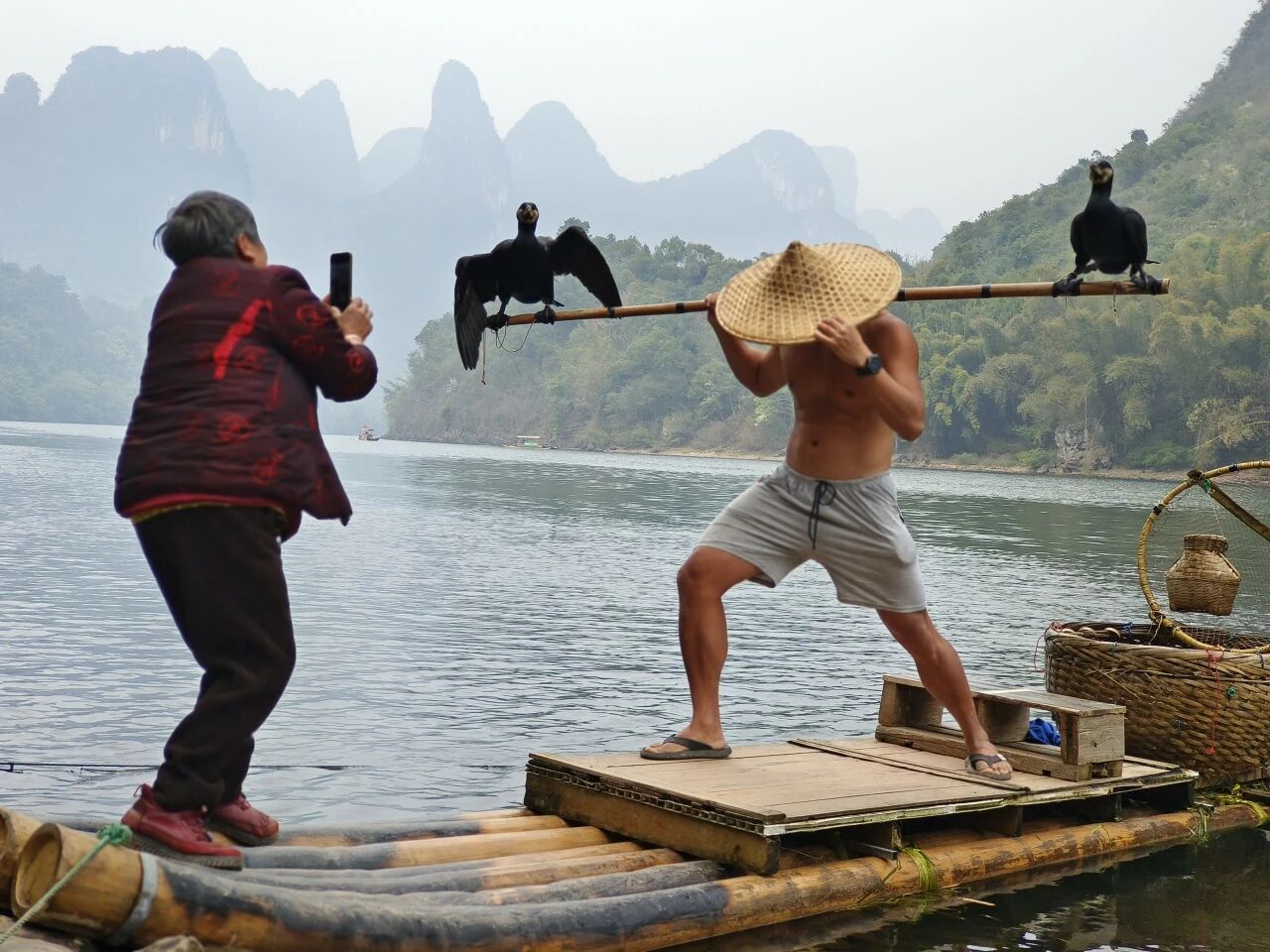 日前,一位网友晒出了自己的“五元钱大片”:山水之间一竹筏,两只鸬鹚担上挑,手扶斗笠低檐,发丝飞扬,活脱脱的一部武侠大片。难以置信的是,这照片竟出自一位桂林阳朔农村妇女之手。网友说,阿奶不仅拍的好,更全程“哇噻、哇噻”地赞叹,给予了自己满满的情绪价值:“五块钱花出了五万块的感觉”。