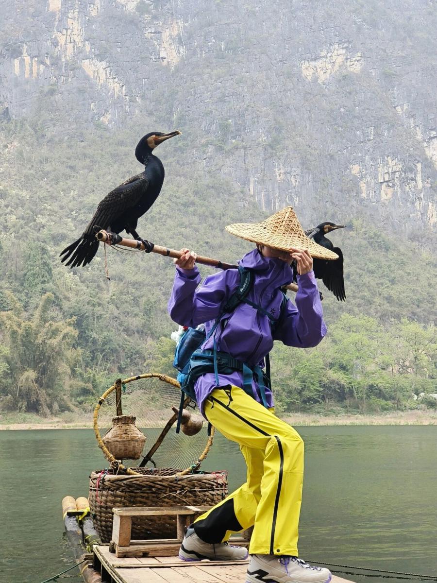 事情要从几天前说起。一位网友晒出了自己在漓江上拍的“五元大片”。照片上,他身着时尚的户外冲锋衣,但却像极了武侠大片里走出来的人物:斗笠低檐遮脸,一脚弓步在前,背后挑着一担,两只鸬鹚立于其上,背后是群山碧水,雾气迷蒙,颇有“邵氏电影”的味道。 有意思的是,给他执镜的,不是什么知名大导演,而是老村头村民赵莲娥。赵莲娥一边指导他摆动作,引导他的情绪,一边连声称赞“哇噻,哇噻”“大片,大片”。网友说,自己在一片称赞声中“渐渐迷失了自我”“五块钱花出了五万块的感觉”。