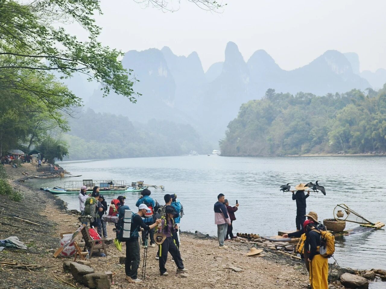 来自湖北武汉的吴同学,前天来漓江徒步,正好刷到那条视频,慕名请她帮自己拍照。