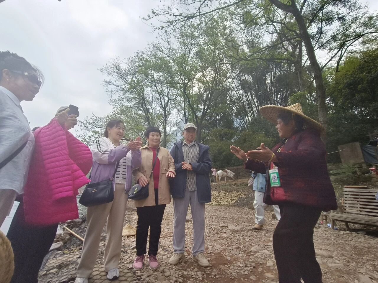 老村头是漓江阳朔段的网红打卡地。“阳朔甲天下”石碑和群峰倒影吸引着无数游客慕名前来。刚开始,赵莲娥也是摆个摊做点小买卖。后来,她发现很多人想和山水合影留念,便自告奋勇当起了“野生摄影师”。
