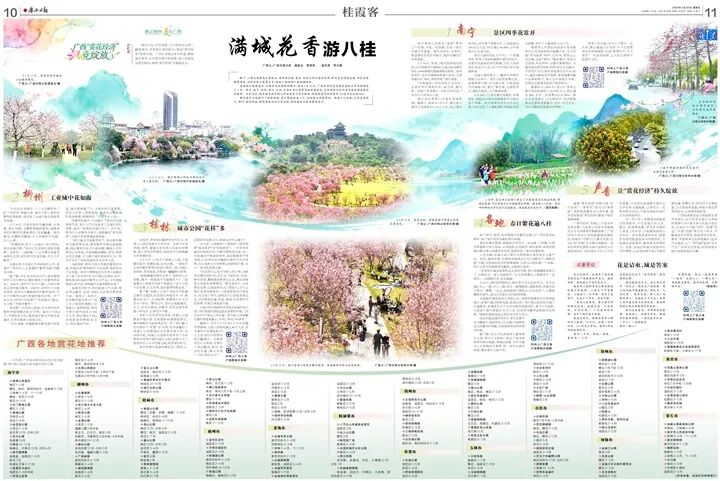眼下,八桂大地繁花次第绽放,城市的公园、景区、街道化作烂漫的花廊,举目皆是诗意浪漫,市民游客踏青寻芳,沉醉在春日美景之中,绘就一幅幅动人的斑斓画卷。