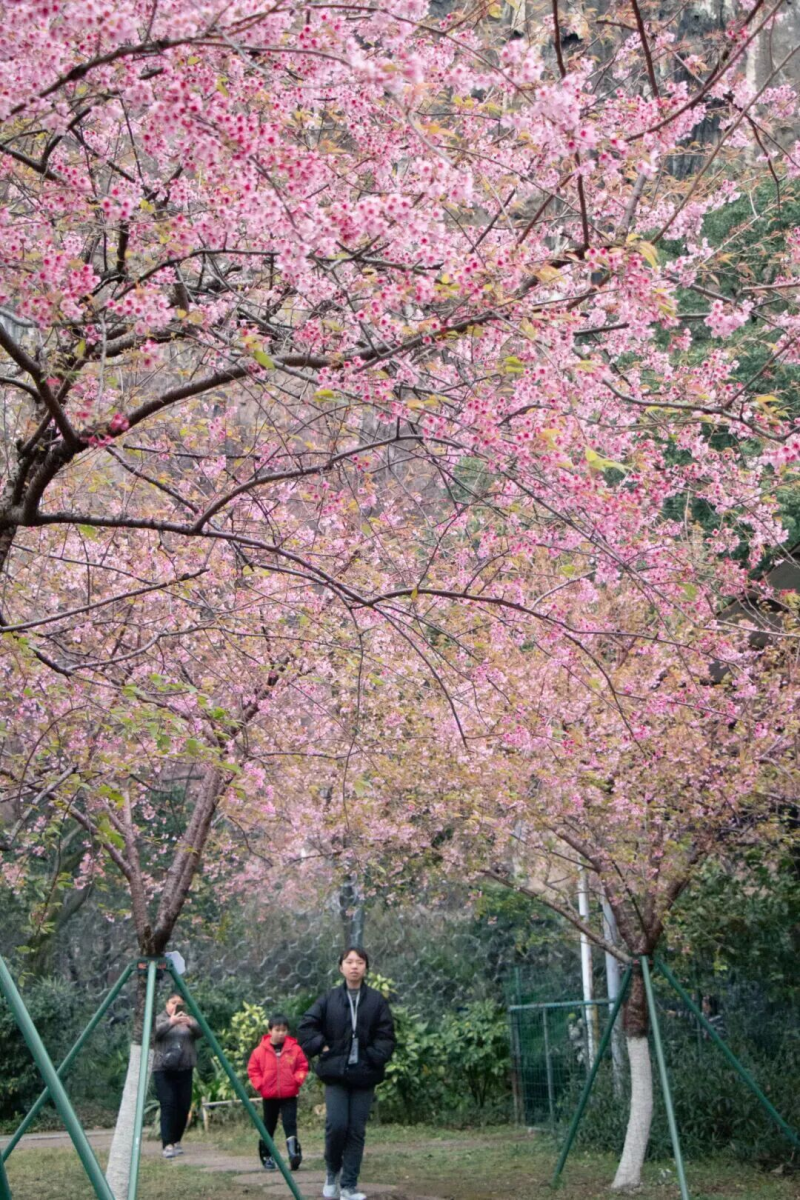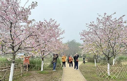 据统计,今年1月1日至3月16日的樱花季期间,公园入园客流量达40万人次,其中接待外地团体客2.5万人次,较往年同期实现大幅增长。花事带来的巨大客流,也带旺了周边餐馆、旅店、商店的生意,真正实现“一花引得百业兴”。