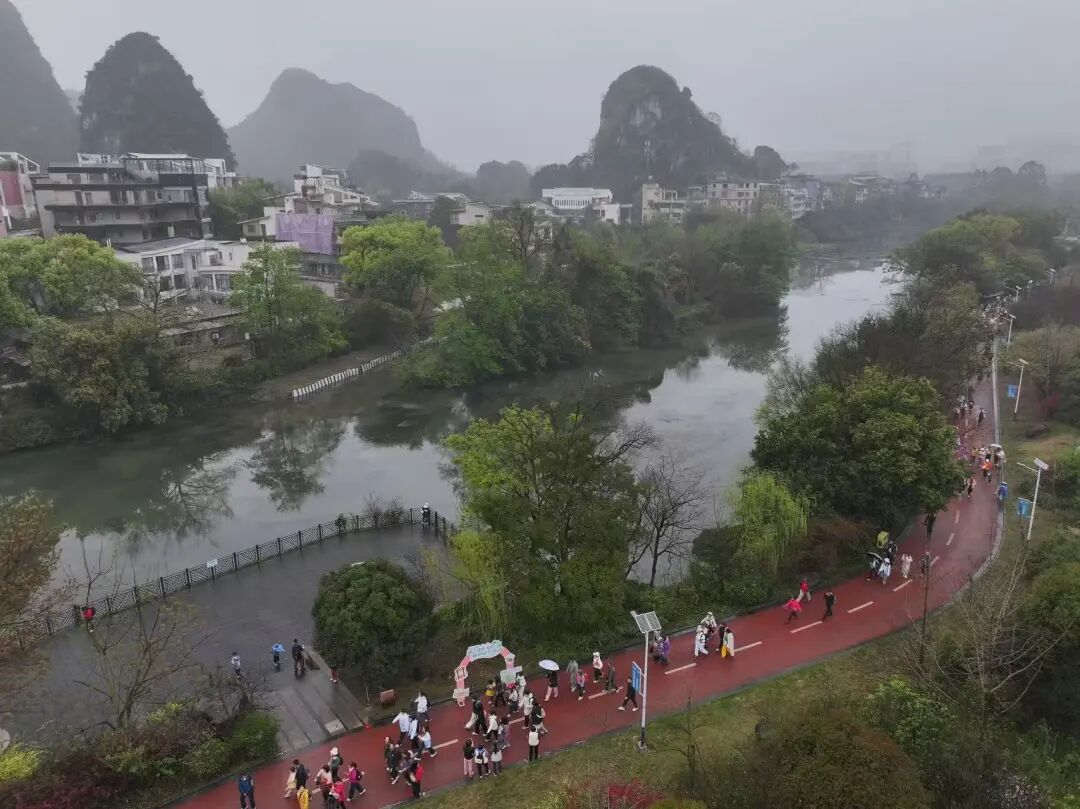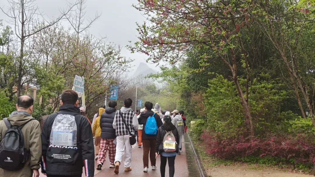 据活动组委会介绍,今日共有超过九成徒步者完成全程打卡。这场在春雨中进行的徒步大会,不仅让参与者体验了“烟雨桂林”的独特意境,更通过桃花江畔的花海、弱柳扶风的江岸,将春日漓江的生态之美与人文底蕴,深深印入每位徒步者的步履之间。