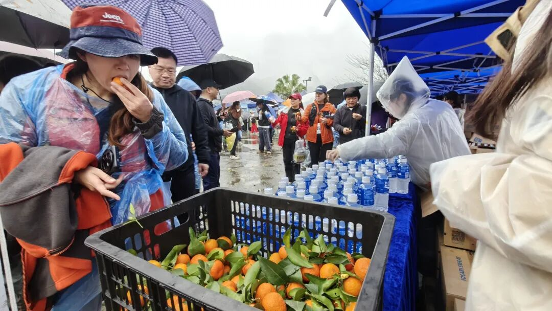 沿途设置了多个补给点,提供充足的饮用水和能量食品,很多外地的徒步者在补给点惊喜的发现,在桂林徒步实现了砂糖橘自由。全程在岗递水指引的志愿者、随时待命的医护人员、维持秩序的安保人员,用温暖的笑容和及时的帮助,成为徒步者最坚实的后盾。鲁家村篮球场的医疗补给点旁,花开如雪,花瓣随雨飘落,铺就一条天然花径。在补给站设置的垃圾桶旁,徒步者们自觉分类投放垃圾,用实际行动践行“无痕户外”的承诺。