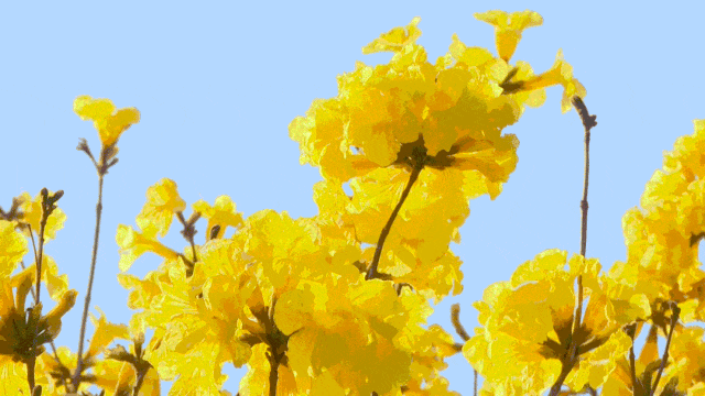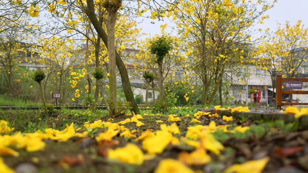 放眼望去犹如花的海洋春风吹来,花瓣簌簌落下,像一场金色的雨