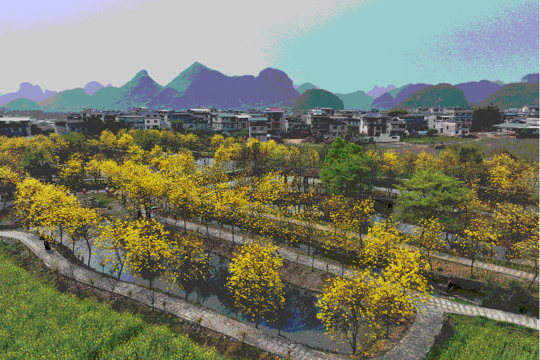一树一树的金黄,像是把春天的阳光揉碎了,洒在枝头。