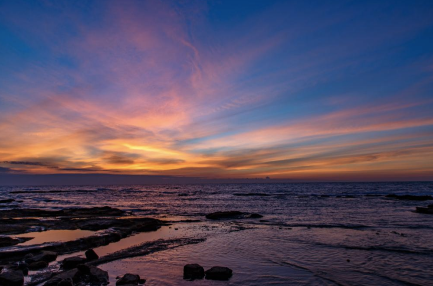 石螺口海滩位于涠洲岛西海岸,形状像一个螺口,因此得名石螺口。因为地理位置的关系,这片海的含泥沙量非常低,海水非常纯净。珊瑚沙滩洁白耀眼,海水清澄如镜,落日时分,夕阳将海面染红,让整片海滩就像油画般色彩浓郁