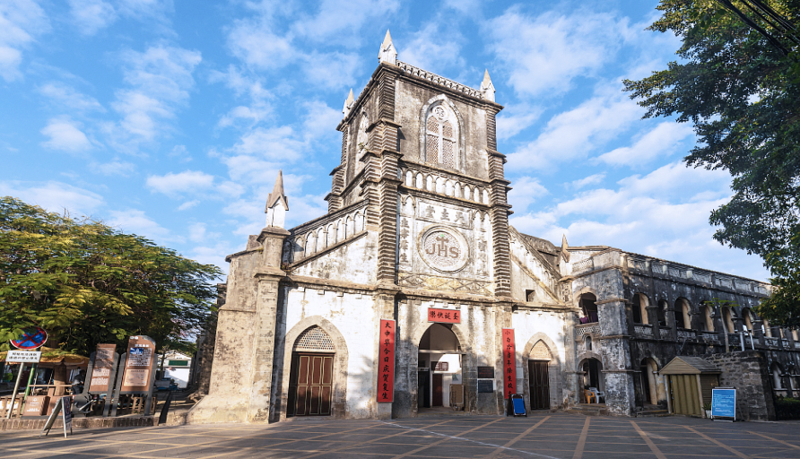 岛上著名的人文地标,掩映在一片绿影婆娑的芭蕉林和菠萝蜜树林中,是广西沿海地区最大的天主教教堂。整座天主教堂采用当地的火山灰块石和珊瑚石砌筑墙体,独具特色。历经了一百多年岁月的洗礼和数不清的台风暴雨摧残,如今的教堂依旧挺拔完好,是北海目前现存最早的西式建筑之一,是研究我国建筑史、宗教史的重要实物。2001年6月25日,国务院公布为全国重点文物保护单位。