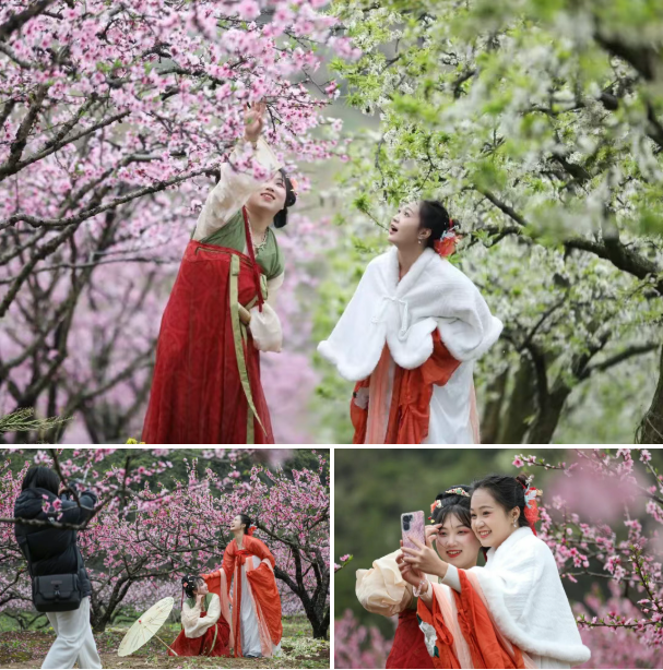 汉服爱好者 龙女士:今天跟我的好姐妹穿着汉服来这里,因为春天桃花开得特别美,就想着穿汉服来拍照留念。汉服是我们的传统服饰,和桃花、春天搭配在一起,特别有诗情画意。既能感受春天的美好,也能把传统文化穿在身上,觉得很有意义。希望大家都能多走出家门,感受春天,感受传统文化的魅力。